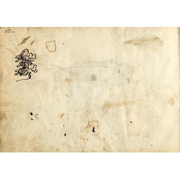Lanza Giovanni Giordano; Lanza Giovanni Giordano, studio di caseggiato su rocce (disegno)
