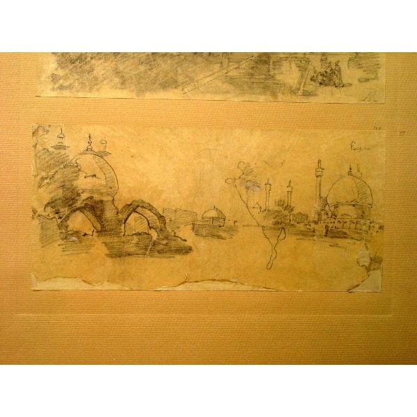 Schizzo di costruzioni cupolate, minareti e rovine