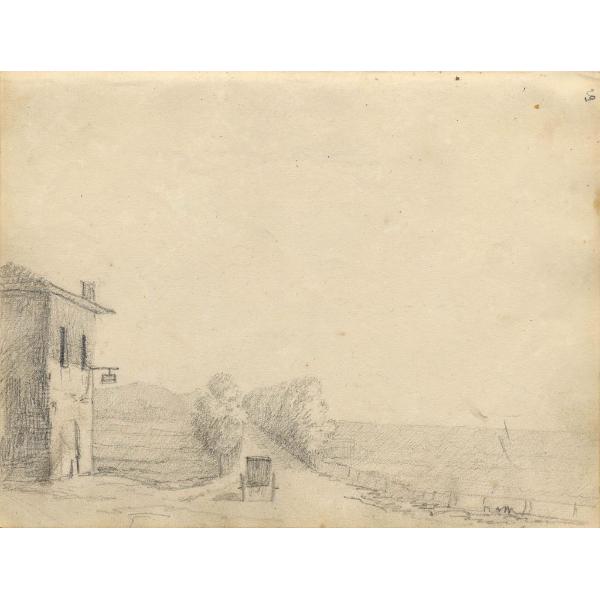 Studio di paesaggio con locanda e carrozza