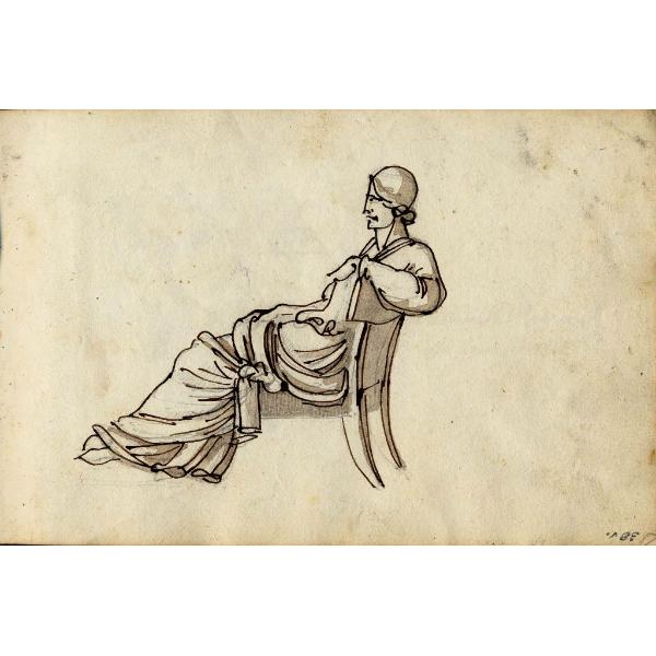Scaglione Monaco Virginia Del (notizie 1974) ; Scaglione Monaco Virginia Del (notizie 1974) , Figura di giovane donna seduta con abito lungo con fiore