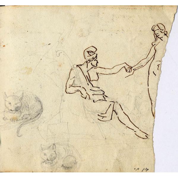 Figura di Paride e studio di gatti