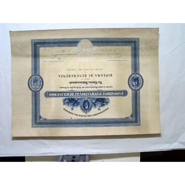 Diploma di benemerenza - Esposizione Internazionale di Milano
