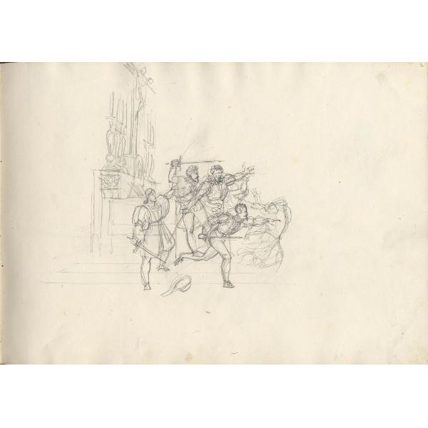 Scena di congiura presso un altare (costumi cinquecenteschi)