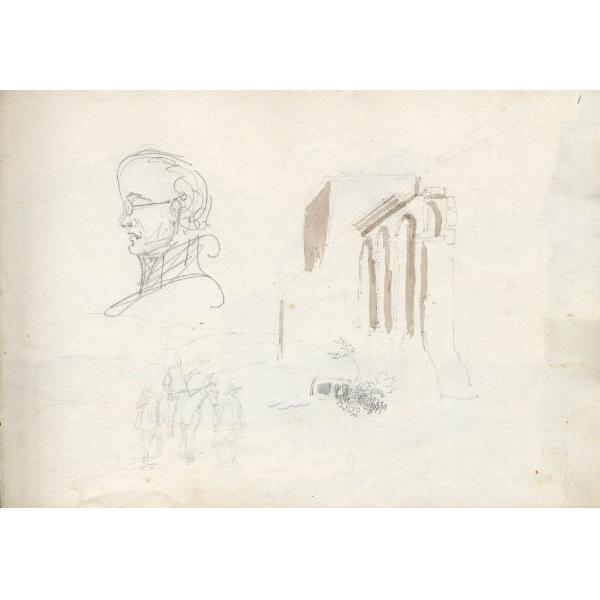 matita e acquerello su carta vergata bianca