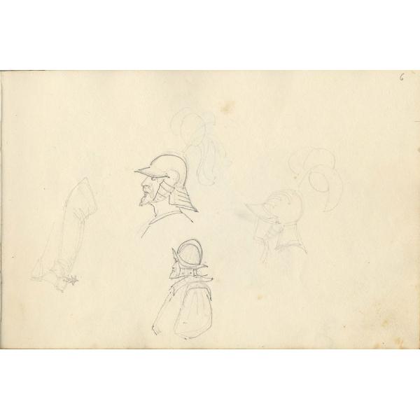 Studi di volti ed elmi di soldati