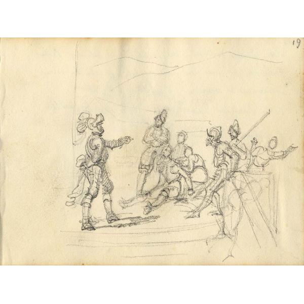 Scattola Domenico; Scattola Domenico, Un episodio del romanzo Niccolò de' Lapi, interno con figure (dipinto, serie)