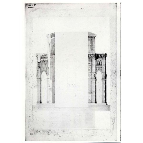 Progetto per la facciata del Duomo di Firenze - Metà sezione, metà prospetto e pianta.