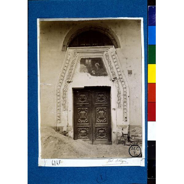 Piobesi Torinese - Chiesa, portale sormontato da affresco