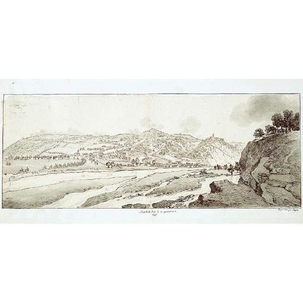 penna bruna e nera, inchiostro a pennello, tracce di matita, punti ad acquerello rossi e blu ad indicare la dislocazione delle truppe
