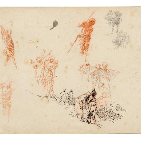 matita, sanguigna e penna a inchiostro nero su carta avorio