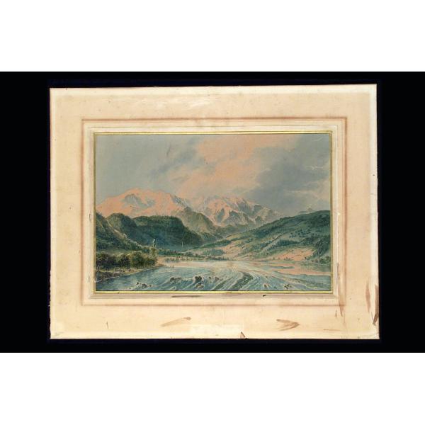 Viaggio di Savoia-Faucigny. Fianco occidentale del Monte Bianco, disegnato dal ponte sull'Arve tra St. Martin e Sallanches