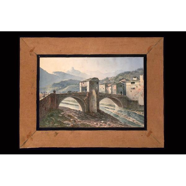 Viaggio di Nizza. Sospello, ponte medioevale a doppia arcata con torre centrale sul torrente Bevera
