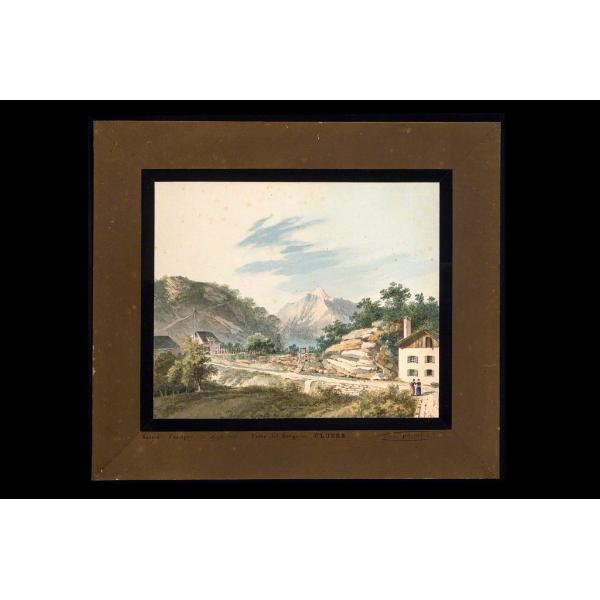 Viaggio di Savoia-Faucigny. Parte del borgo di Cluses con casette ai margini di una stradina e piccoli chiusi