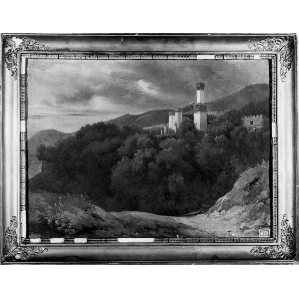 Castello fra macchia d'alberi e pianura