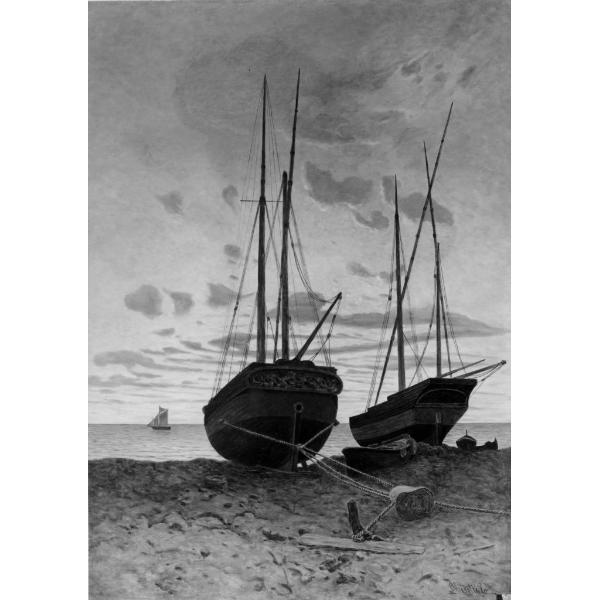 Marina con barche alla riva (tramonto)
