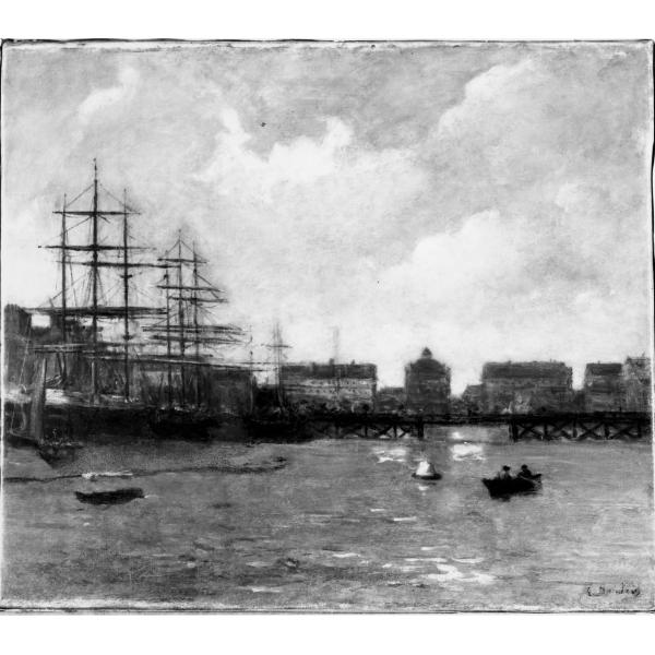 porto, marina con barche (dipinto)