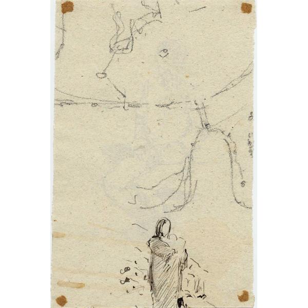 carboncino, penna e inchiostro bruno a pennello