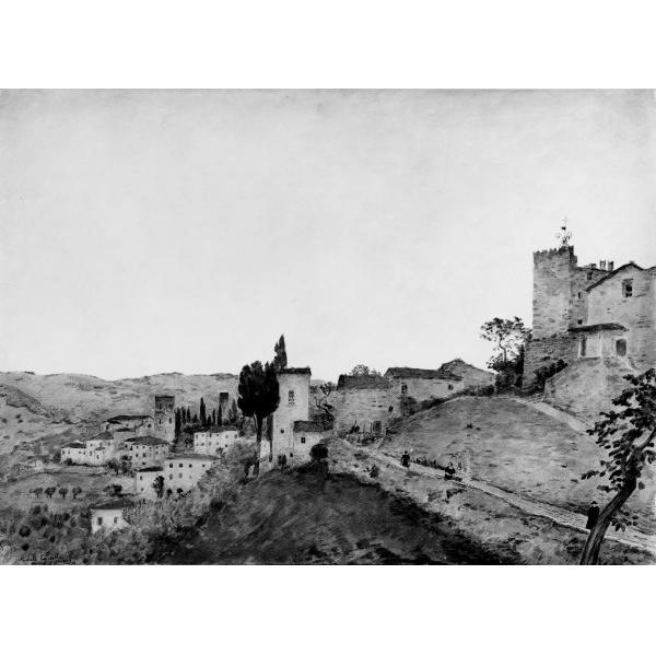 Anonimo Italiano sec. 20., Veduta di Montecatini Bagni e Montecatini Alta dall'Ippodromo