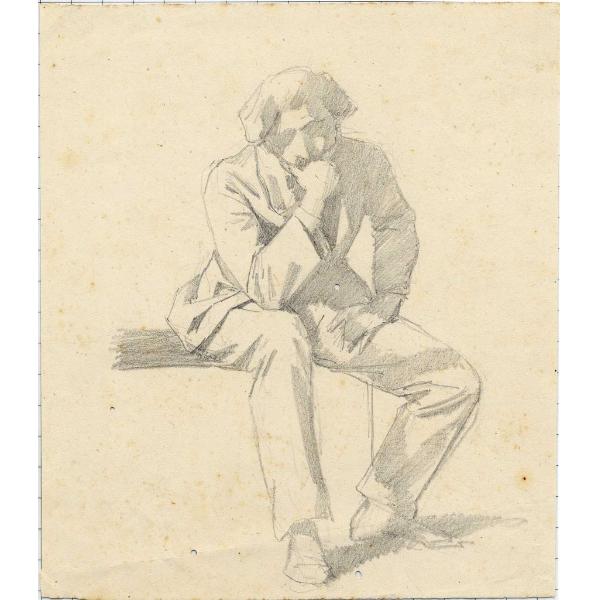 Studio di figura maschile seduta col mento appoggiato alla mano