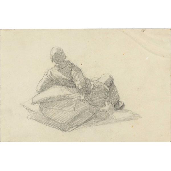 Studio di figura maschile sdraiata di spalle su un cuscino