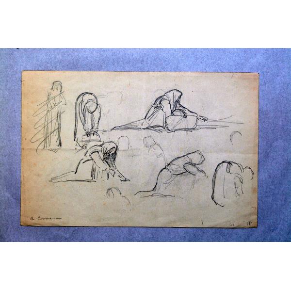 Sette schizzi di figure di popolane in pose varie (a Cervara)