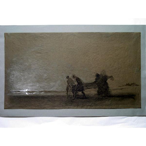 Seppellimento di Cristo. Cristo portato a braccia sulla riva di un lago