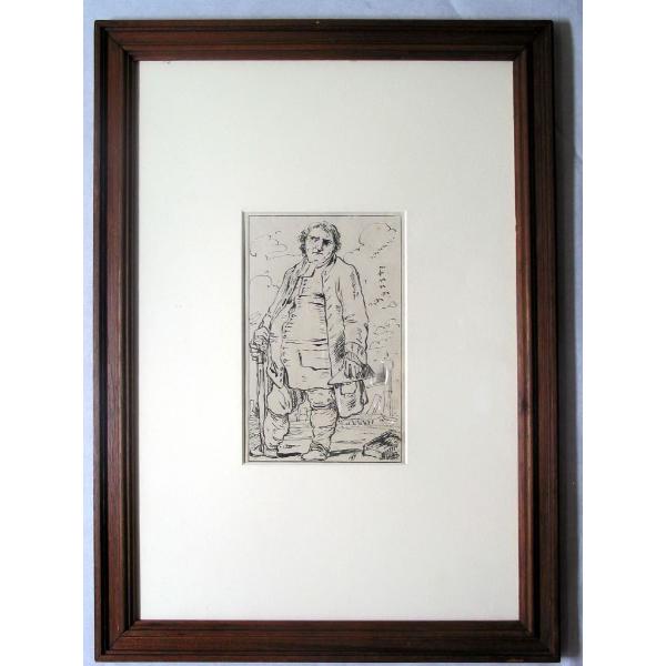 Uomo in piedi con tricorno e bastone