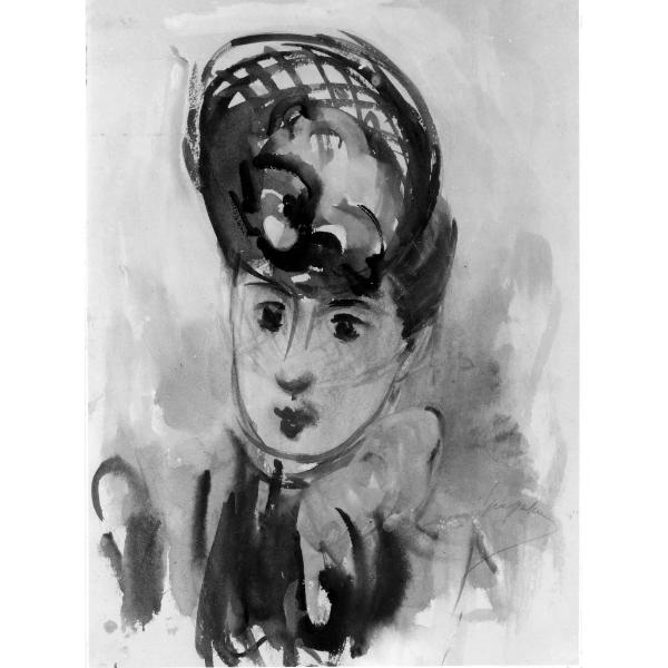 Gabbiani Giuseppe; Gabbiani Giuseppe, Testa dal Michetti, Ritratto di donna (disegno)