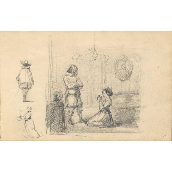 Studio per Lucia davanti all'Innominato e piccoli studi di figure