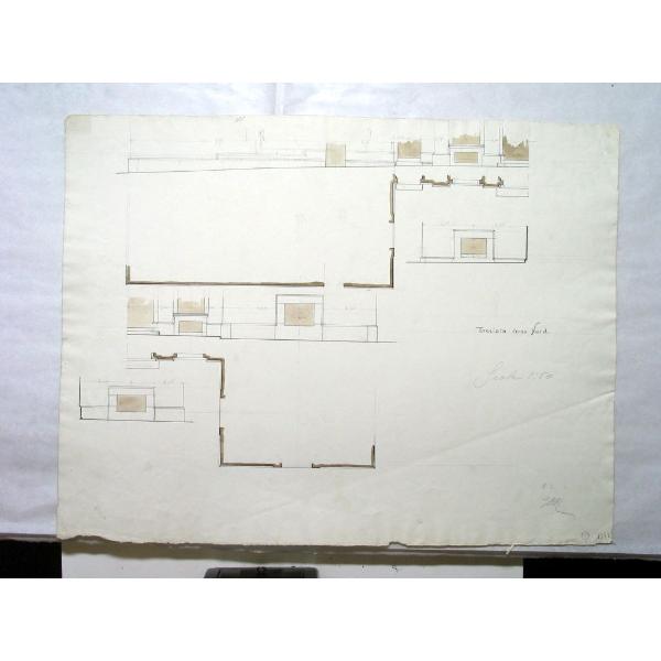 Prospetto e pianta dello zoccolo della facciata verso nord di Villa Ceriana- Pieve di Sori