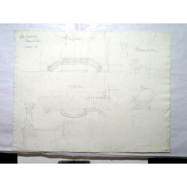 CEPPI Carlo, Prospetto e pianta della scalinata esterna di Villa Ceriana- Pieve di Sori