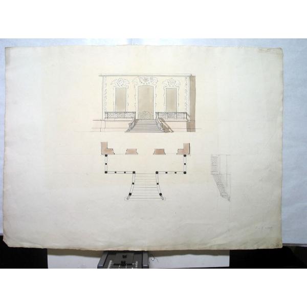 Prospetto e pianta della scalinata esterna di Villa Ceriana- Pieve di Sori