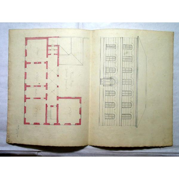 Pianta del primo piano e prospetto della facciata della scuola per la Mendicità Istruita in Borgo Dora