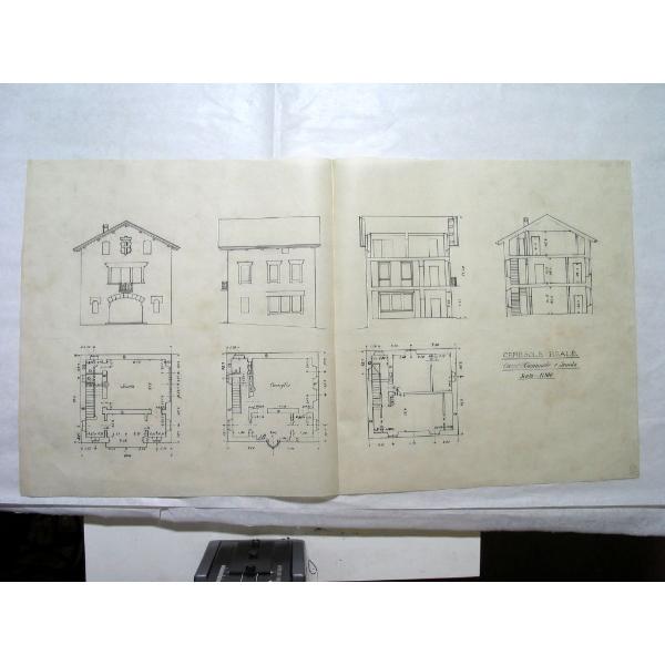 Ceresole Reale - Progetto di scuola e sala Comunale (facciata, sezioni, piante)