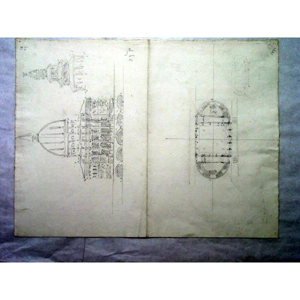 Esposizione di Parigi-Pianta e prospetto di padiglione espositivo