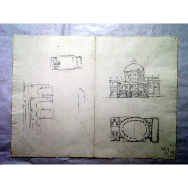 CEPPI Carlo, Esposizione di Parigi-Pianta e prospetto anteriore e posteriore di padiglione espositivo
