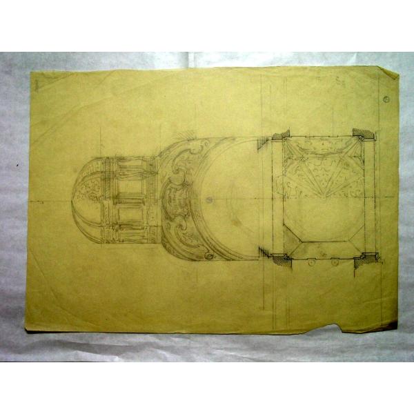 Pianta e sezione di cupola di edificio religioso