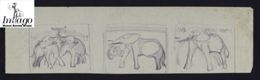 *SVIS VIRIBVS POLLENS / [Renato Brozzi]. - [1930-1935]. - 1 disegno : pastello violetto cobalto scuro ; 80x294 mm. - Tit. da legenda sulle targhette con motivi animalistici di elefanti, illustranti un motto dannunziano. A. del cat. Per la data di esec. cfr. Mavilla 1994 (1), pp. 93-94, 109-110, 124-125, 206-207.