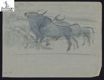 [*Tori della Campagna Romana / Renato Brozzi]. - [1920-1940]. - 1 disegno : carboncino e inchiostro blu acquerellato ; 218x285 mm. - Tit., A. e data di esec. del cat. Carta velina avorio. (( Carta [1] recto.
