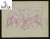 [*Portasigarette con motivo animalistico di gazzelle affrontate con i rispettivi piccoli disposti specularmente / Renato Brozzi]. - [1930-1950]. - 1 disegno : matita viola manganese chiaro e blu cobalto, matita di grafite ; 124x160 mm. - Tit., A. e data di esec. del cat.