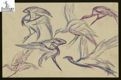 [*Spille con motivo animalistico di aironi in volo / Renato Brozzi]. - [1955- 1960]. - 1 disegno : penna a inchiostro blu su matite blu cobalto e viola manganese chiaro ; 110x170 mm. - Tit., A. data di esec. del cat. Cartoncino avorio.