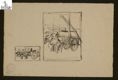 [*Targhette con vedute del porto di Cagliari e carretto trainato da una coppia di asinelli / Renato Brozzi]. - [1917]. - 1 disegno : penna a inchiostro bruno ; 250x370 mm. - Tit., A. e data di esec. del cat. In bs. a sin., timbro a inchiostro del Museo e il vecchio inv. 123. Carta avorio tagliata irregolarmente lungo i margini. (( Carta [1] recto.