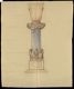 [*Trofeo con coppa liscia, base con motivo animalistico di pesci affrontati e piedistallo recante sulla fronte lo stemma sabaudo inquadrato da rapaci] / R.Brozzi. - [1922]. - 1 disegno : pastello nei colori azzurro celeste, azzurro oltremare scuro, violetto cobalto scuro, terra di Siena naturale, terra ombra bruciata, bronzo, carboncino e sfumino ; 1260x1055 mm. - Tit. del cat. A. da firma autografa in bs. a sin., a matita di grafite. Data di esec. dal millesimo apposto sulla fronte del piedistallo del trofeo di cui all'unità MB DIS 4680. Sul disegno in oggetto, in corrispondenza dei diversi elementi costituenti il trofeo, indicazioni tecniche dell'A. relative ai materiali da impiegarsi, a matita di grafite. Nel verso, timbro a inchiostro del Museo e il vecchio inv. 482. Carta da pacco avorio.
