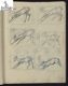 [*Targhette con motivi animalistici di gazzella variamente atteggiata e di maialino in corsa / Renato Brozzi]. - [1915-1922]. - 1 disegno : matita di grafite e penna a inchiostro blu ; 254x188 mm. - Tit., A. e data di esec. del cat. (( Carta n. [6] recto.