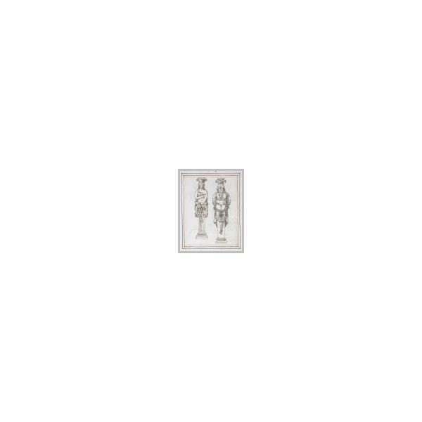 DUE PIEDISTALLI ORNATI CON CARIATIDI E TELAMONE