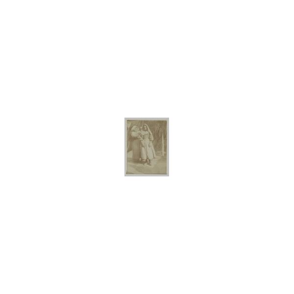 Due contadine e un bvambino di fronte a una capanna