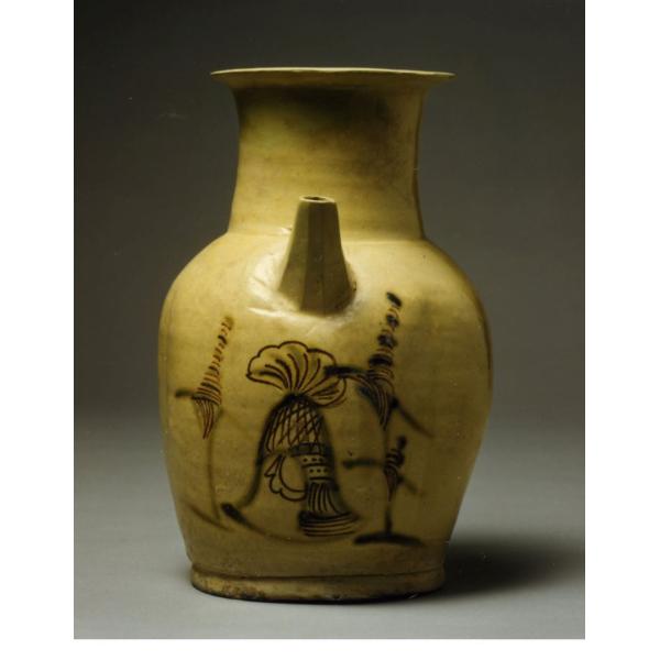 Gres grigio-beige/ ossidi metallici e invetriatura bianco-crema trasparente