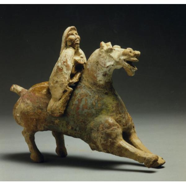 Cavallo e cavaliere con mantello e cappuccio