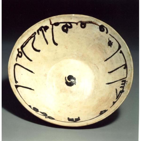 corpo argilloso/ ingobbio bianco/ decorazione in nero/ invetriatura