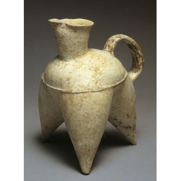 Terracotta bianca ben sgrassata. Piedi modellati separatamente e applicati al corpo del bricco.
